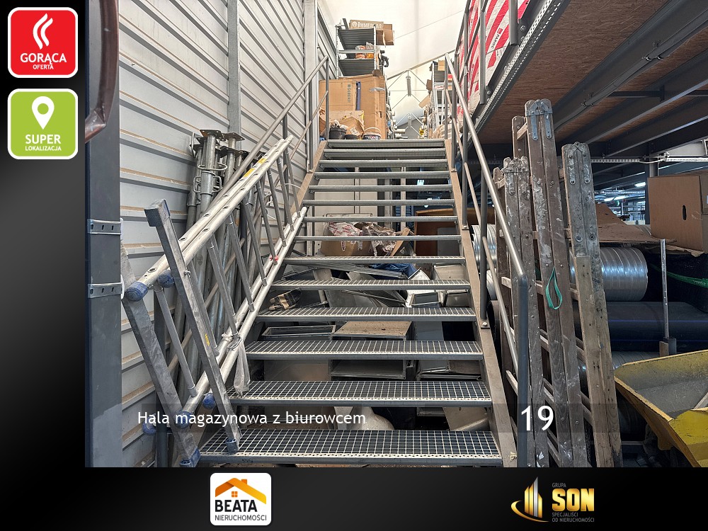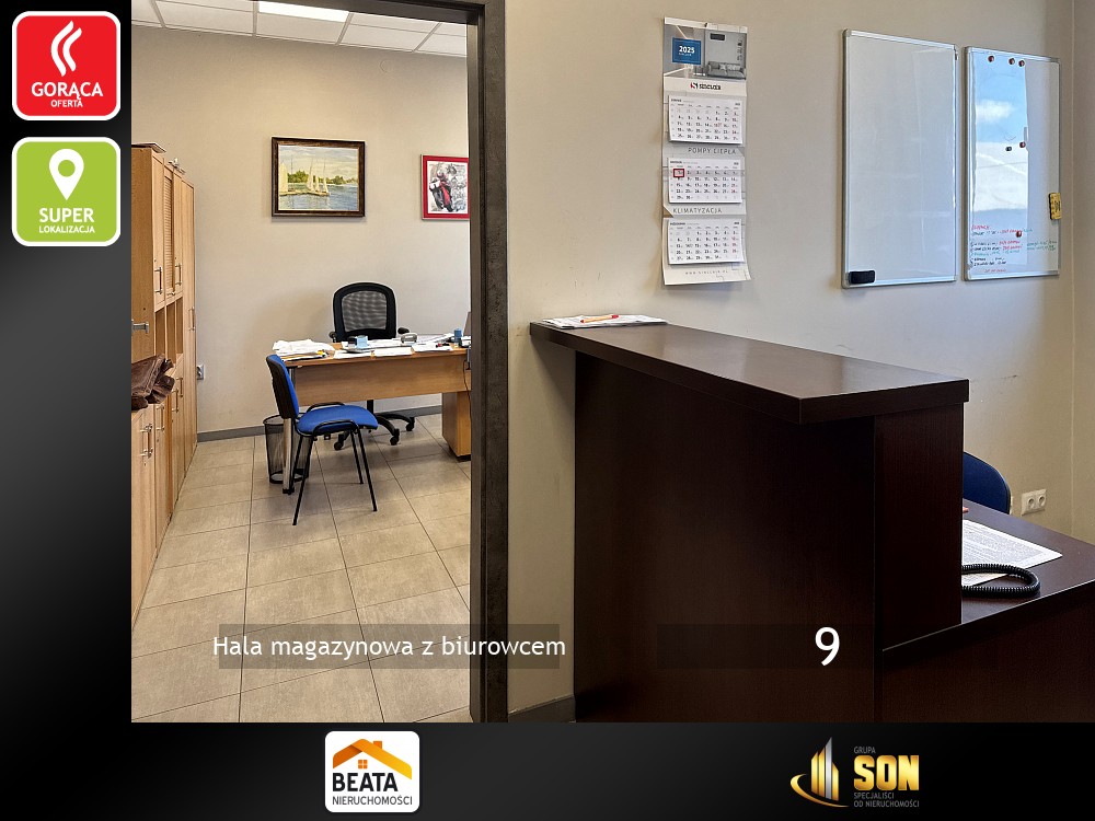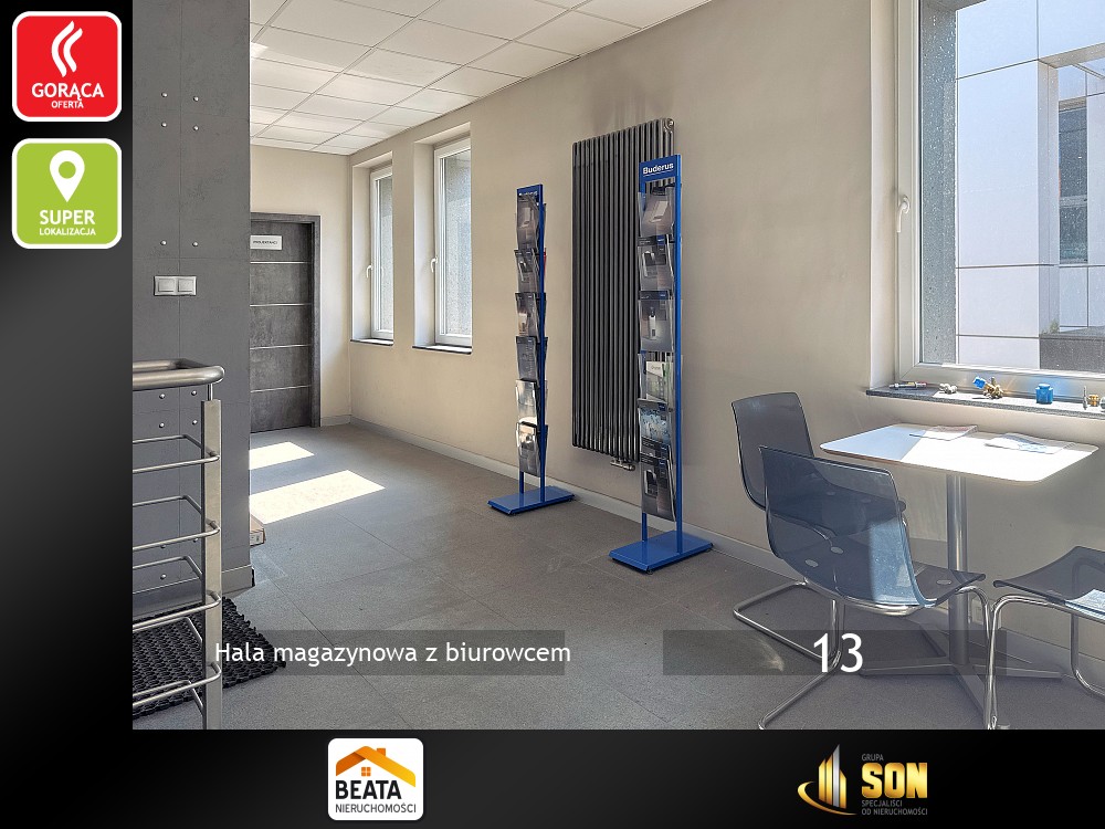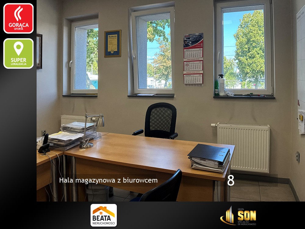 Razem z halą obiekt tworzy budynek biurowo-usługowy na działalność handlową i usługową . Piętrowy, murowany, po termomodernizacji, dach kryty papą termozgrzewalną i ocieplony styropianem o grubości 30cm. Powierzchnia użytkowa około 250mkw. Na parterze znajduje się lokal handlowo-usługowy do adaptacji, kotłownia, szatnie i toalety.