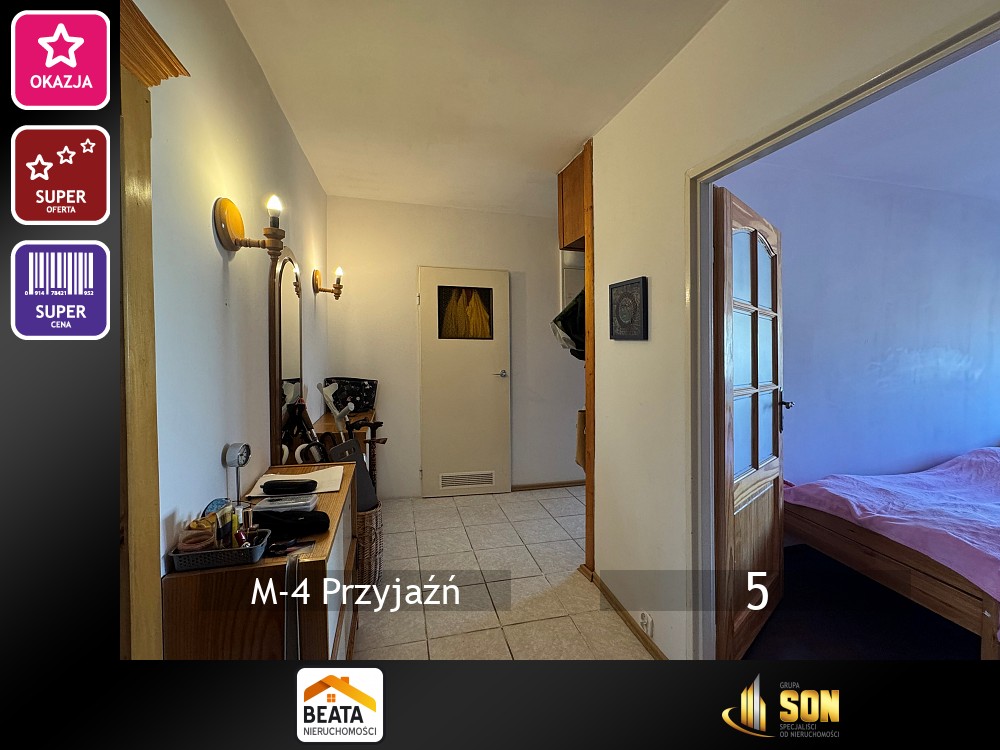 Mieszkanie składa się z salonu z dużym balkonem, dwóch pokoi,oddzielnej kuchni z oknem, przedpokoju, łazienki i WC. Na podłogach w pokojach panele, pozostałe podłogi pokryte płytkami. Drzwi wejściowe wymienione. Na ścianach gładzie. Na balkonie tynk mineralny i wykafelkowana podłoga.