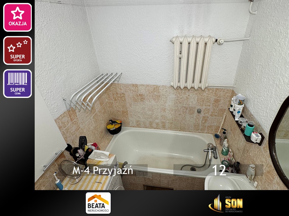 | instalacje | energia elektryczna 230 V, woda z sieci, kanalizacja sanitarna, c.o. z sieci, linia telefoniczna, Internet |