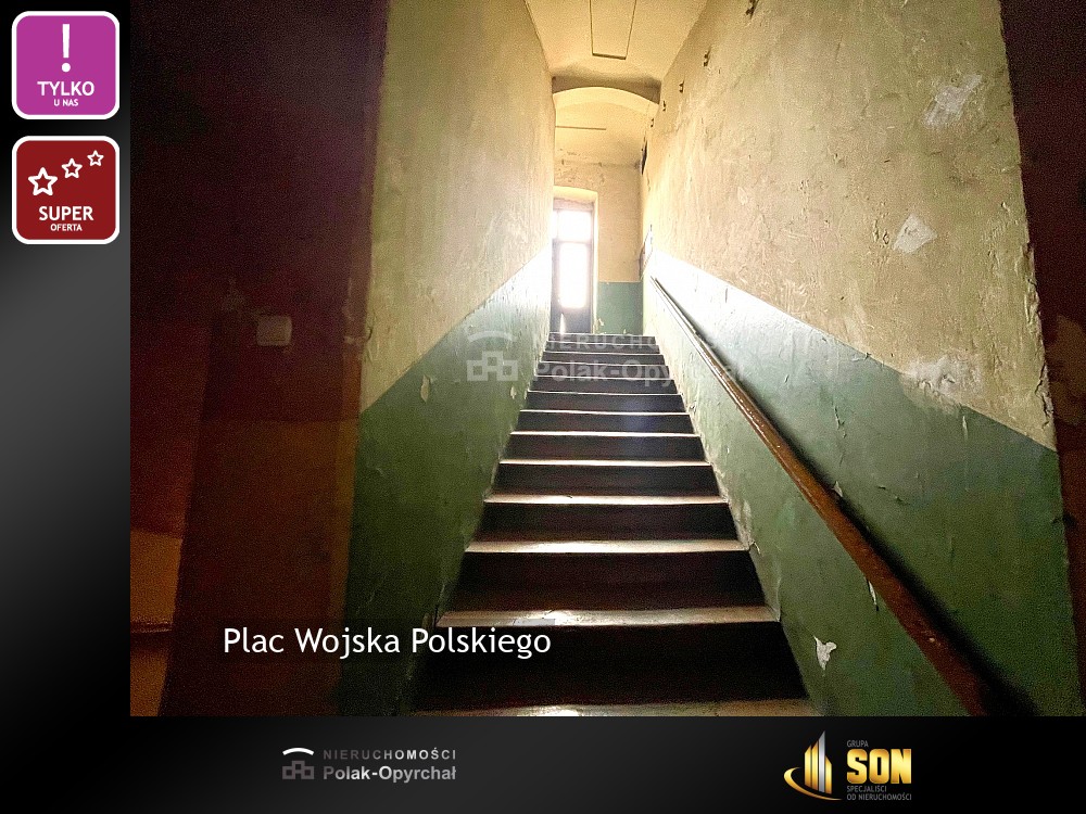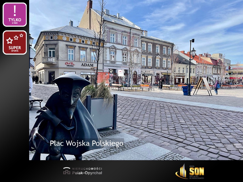 Niepowtarzalna lokalizacja - Plac Wojska Polskiego po modernizacji, pięknie zagospodarowany, na którym odbywają się miejskie imprezy plenerowe.